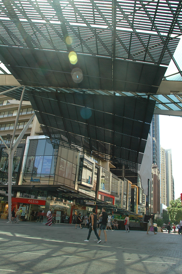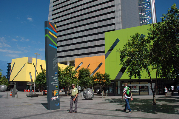 Pegamos um busão (daqueles que não paga nada, claro! rs) e fomos para o centro da cidade: Brisbane Square