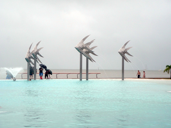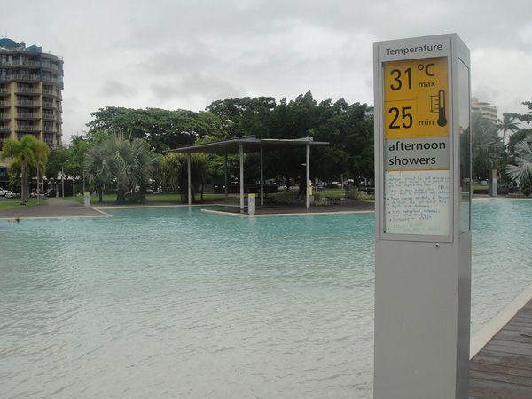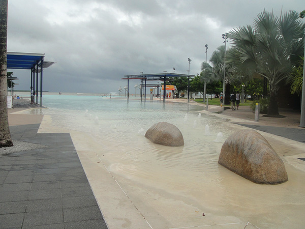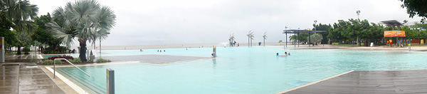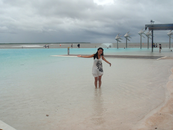 Era nosso último dia em Cairns… nosso último dia de viagem! Deixamos para o último dia, para conhecer o Lagoon, que era a praia artificial da Cairns, já que existia apenas um pântano lá perto do centro!