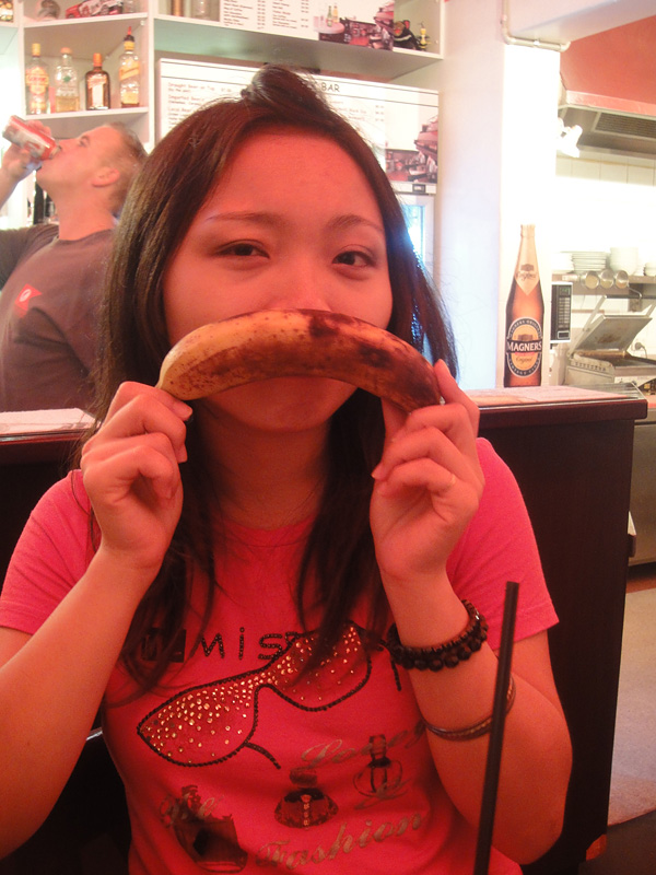 AahauAHAU! • A gente sempre tentava levar uma alimentação saudável! Mas como não parávamos muito no hostel, nossas frutas estavam estragando! A Vita levou na bolsa falando que ía comer... só ela mesmo! • No final das contas, a banana só saiu pra passear mesmo!