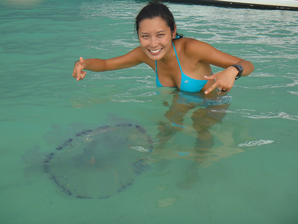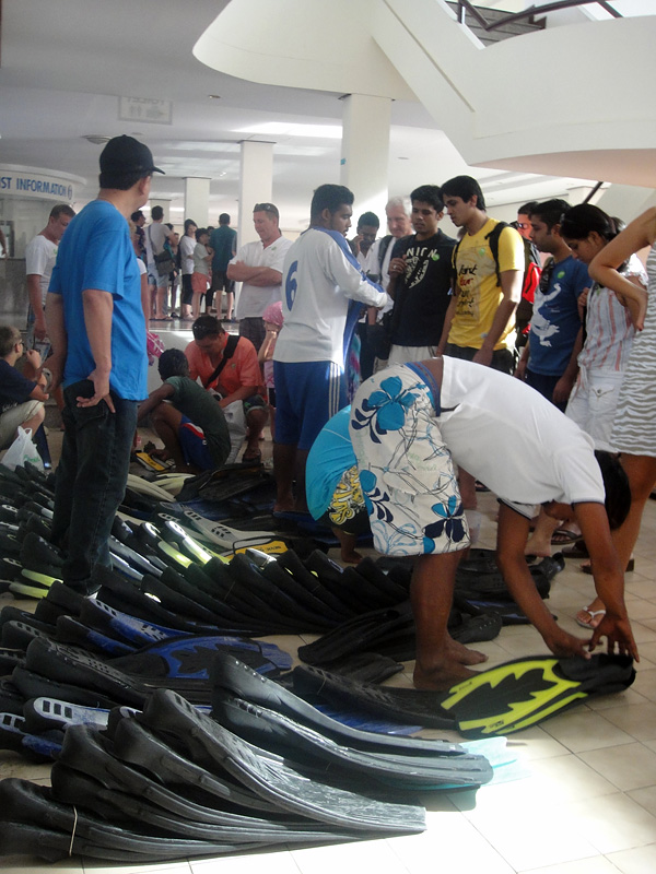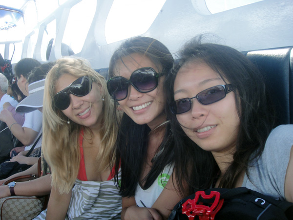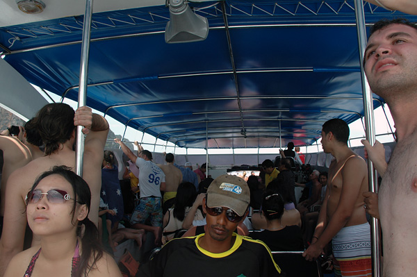 De repente... começou a chover muito forte!! Tivemos que sair correndo do mar, pegar nossas coisas debaixo do guarda-sol e procurar nosso barco! Tivemos que sair correndo debaixo da chuva mesmo! Mas não adiantou sair correndo! Ficamos uns 20 minutos dentro do barco... dando mini-voltas, porque estav faltando um casal! Fala sério!!! Sem contar que essa lona aí, não segurou chuva nenhuma! Quase morri congelada na volta!! Todo mundo molhado + vento da alta velocidade do barco = muito frio!!!