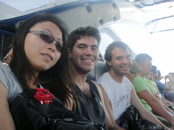 Nóis no barco! Gente... achei que fosse morrer! O barco, digamos que não tinham perfeitas condições! Nem tinha lugar pra todo mundo sentar direito. E pra ajudar, ele tinha uns 6 motores. O bichinho ía muito rápido!! Essa velocidade frenética por quase 1 hora! TENSO!!! • Vita, Bruno e Roberto!
