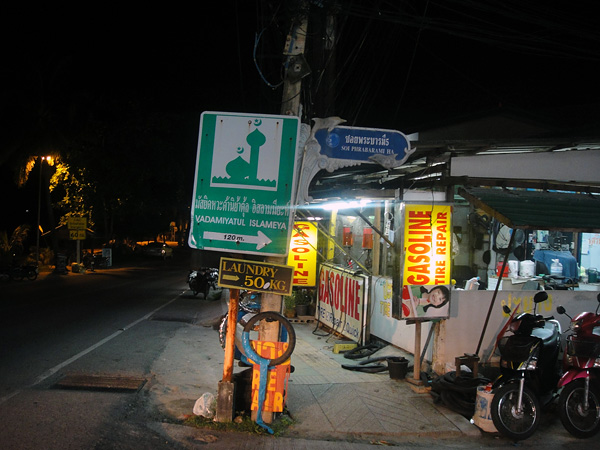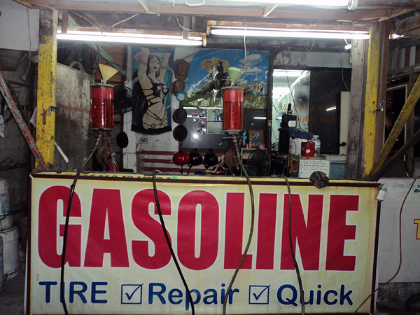 A noite, fomos jantar no centro. Olha o que encontramos: um "posto de gasolina"!