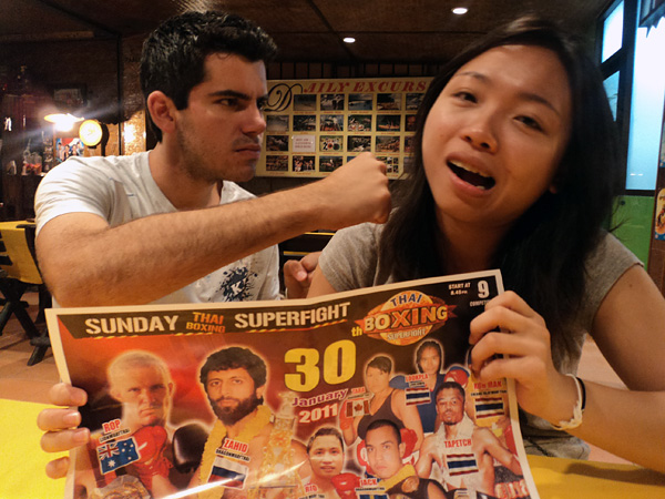 Thai Boxing! Nas noites de luta, passa uns carros com os lutadores em cima (como se fosse desfile), pra fazer propaganda!