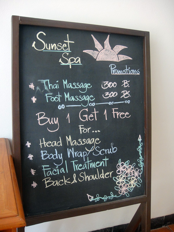 Como era nossas últimas horas lá, a gente tinha que conhecer a famosa Thai Massage! 300Bahts! Cerca de R$ 17,00!