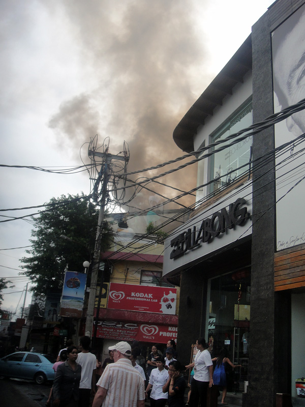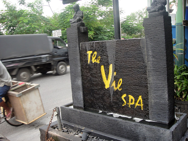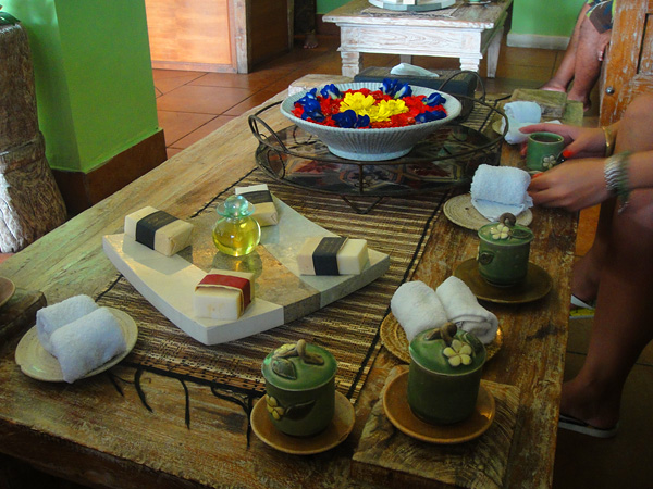 O dia era pra relaxar (e aproveitar pra ver se o Bruno ia melhorar...!). O cara que reservou nossa van ofereceu massagem no spa! Fomos nós conhecer a massagem de Bali! • Na rua do hotel: caos...! Tinha um prédio pegando fogo! E as ruas são muito congestionadas e estreitas!