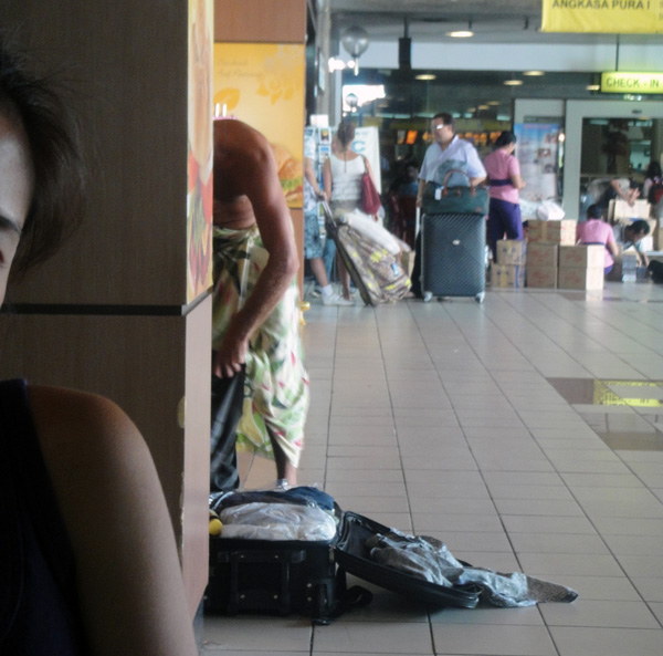 De repente... como se fosse a coisa mais normal do mundo, um cara começou trocar de roupa no meio do aeroporto! AHaUAHau!