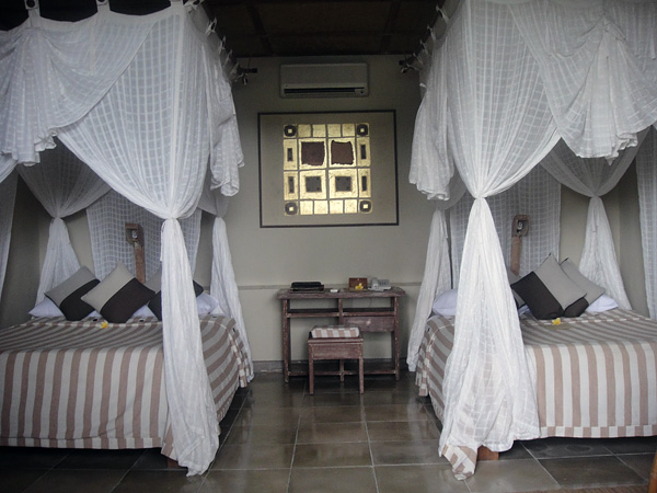 Quarto! De noite, o pessoal do hotel passava pra abrir esse pano branco, pra proteger dos mosquitos!