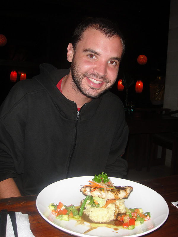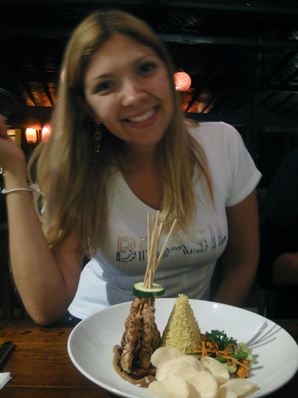 De noite, saímos pra jantar no centrinho de Ubud! A cada 1 hora saía van do hotel pra lá! O Bruno ficou no hotel, porque estava muito mal! Nossa.. eu também passei bem mal nessa noite! Nesse restaurante tava tocando a parte instrumental de Garota de Ipanema!! Fala sério! Foi surreal! ahahah! • Ai.. a gente viu ratos andando no teto desse restaurante… disgusting!