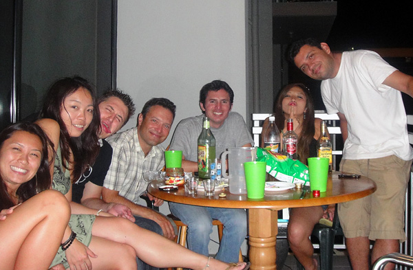Que vergonha! Quem correu atrás da bebida, limão e tudo mais pra fazer caipirinha, foi o suíço! ahaha! O Mario tinha passado um tempo no Brasil antes de ir pra Australia!