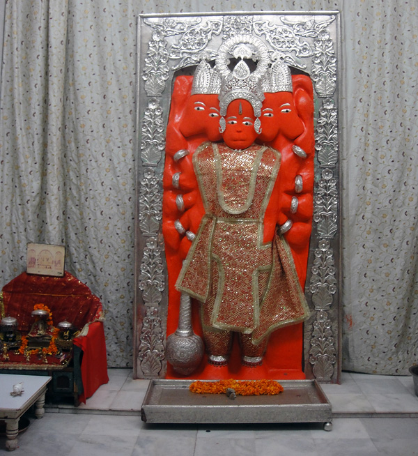Depois, a Smriti me levou em mais alguns templos menores. Meio assustador...! • deus Hanuman