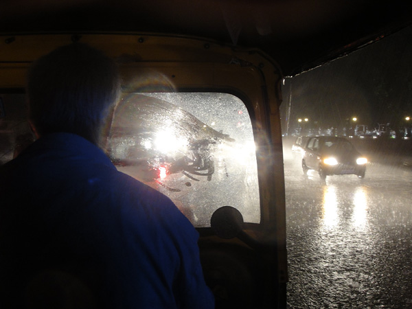 Voltando pra casa de rickshaw! Levei altos banhos! =P • Como vocês podem perceber, rickshaw não tem porta! ahahah