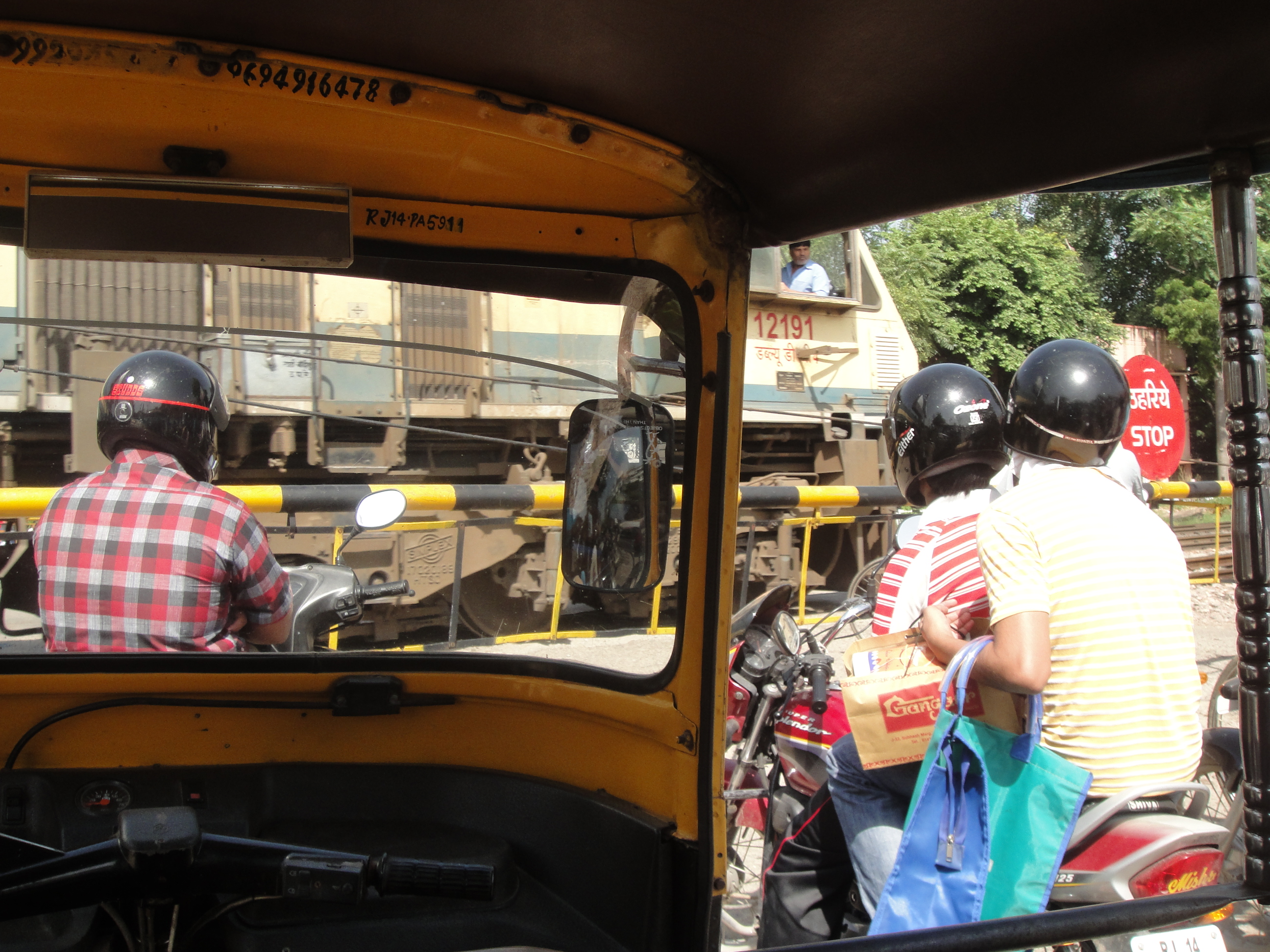 De manhã, pego rickshaw e vou pro trampo! A maioria das vezes, tenho que esperar o trem passar.... Teve um dia que esperei uns 15 minutos! Passou uns 4... Cozinhei aqui... AHauaHU!