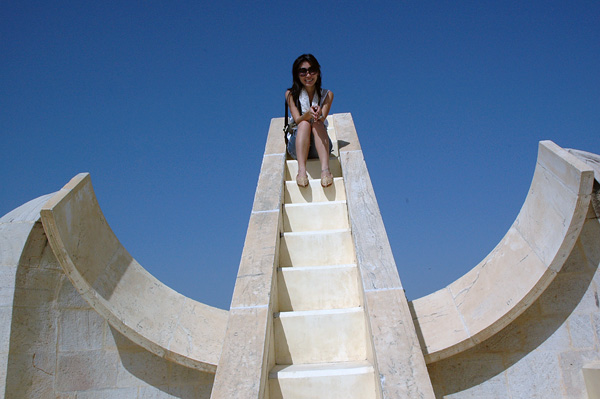 Do lado do City Palace, fica o Jantar Mantar, que é um complexo arquitetônico com fins astronômicos! Gente, vocês sabiam que até os meus 15 anos eu queria ser astrônoma (não astronauta, e nem astróloga, hein!)? Mas enfim, esse lugar foi construído entre 1727 a 1734 pelo Marajá Jai Singh II. Ele construiu no total 5 desses complexos na India. Segundo o Wikipedia, o de Jaipur é o maior e mais bem conservado! rs