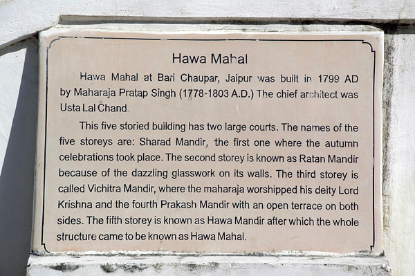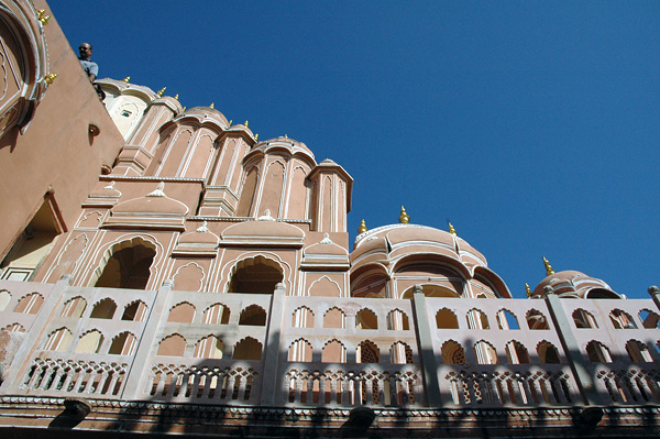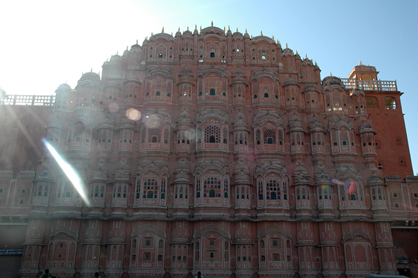 Hawa Mahal foi construído com o formato da coroa do deus-hindu Krishna, e é composta por 953 janelinhas! Essa janelas permitiam que as mulheres do marajá pudesse observar a cidade, sem serem vistas (o que era proibido na época: Purdah).
