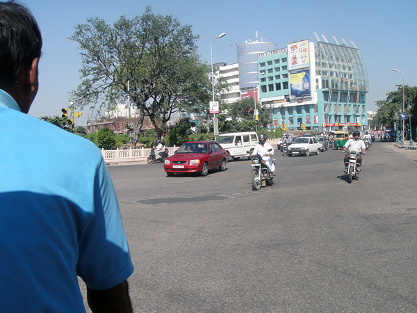 Hoje , vou mostra o caminho que faço pra chegar no trampo! É razoavelmente perto! Mas por causa do calor, nem rola ir andando! Mas as vezes eu voltava andando! O problema aqui da India, é que tem muita gente, como já disse num dos primeiros posts…! O trânsito é caótico! Acho que tudo é permitido aqui! Até quando o guardinha tenta parar o trânsito, algumas motos ainda furam…! Então, mesmo que você vá a um lugar perto, as vezes é melhor pagar um rickshaw: 1º) Nem sempre tem calçada. 2º) As vezes, pra atravessar uma rua demora muiiito! Tanto que eu demorei umas 2 semanas pra criar coragem de atravessar uma rua SOZINHA. De verdade… Mas agora eu já aprendi… você tem que ir atravessando… os carros e motos que desviem. É assim que funciona aqui na India.