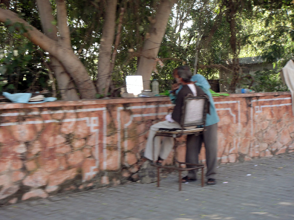 Outra "barbearia" pelo caminho! Falei que só precisa ter um banquinho e o espelhinho?