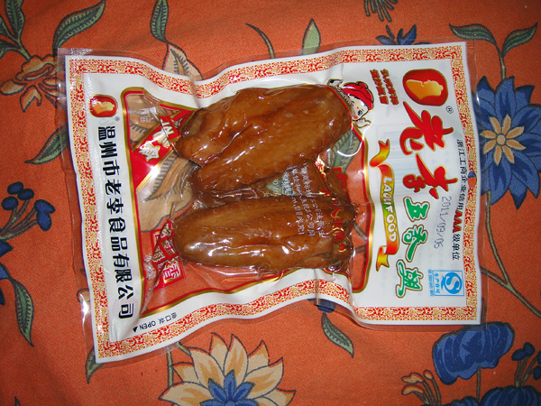 A Zhoujia trouxe muita comida na mala! Muito engraçado! Ela trouxa mais do que eu! E trouxe uns frangos assim! Esse aí, ela me deu! =) • É prontíssimo pra comer! É só abrir o pacotinho e mandar brasa! Frango aqui é quase uma preciosidade!