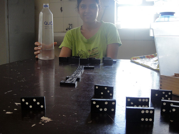 Eu ensinando a Himileta e a Dimple a jogar dominó!