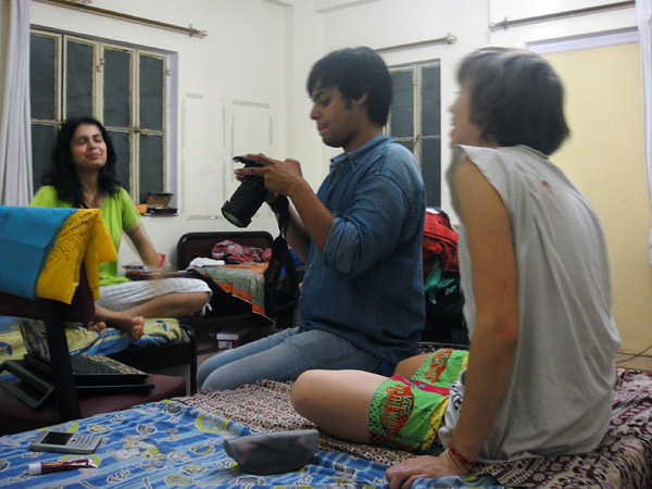 Essa é a Himileta (eu não faço idéia de como escreve o nome dela...)! Ela é a esposa do dono do pensionato! A gente começou conversar um pouco com ela, e ela empolgou! Vinha TODO DIA no nosso quarto conversar... Acho que ela sente falta de sair e conversar... a vida na Índia é muito diferente.... Depende de cada família/casta/costumes também... Mas em geral, algumas mulheres não têm muita liberdade... algumas casam bem novas. Daí têm que ficar em casa, cuidando dos filhos e da casa. E dependendo da família, elas não saem desacompanhadas. Não sei explicar, mas é bem diferente! rs