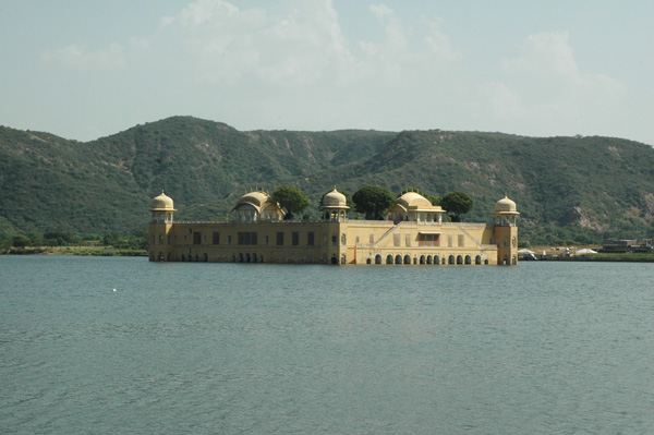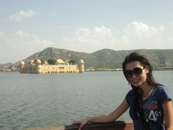 Depois do Amber Fort, pegamos o busão e paramos no Jal Mahal! Esse palácio fica na água, por isso esse nome Jal Mahal que significa “Water Palace”. Foi construído no Man Sagar Lake.
