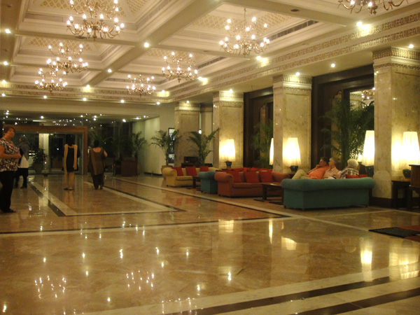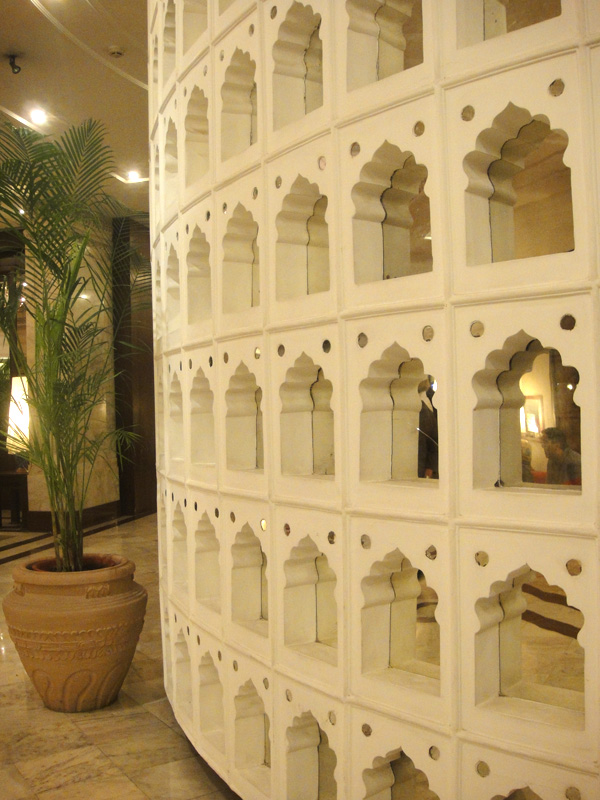 Hotel Clarks Amer • Gente, fiquei encantada com o interior do hotel. É tão diferente das ruas da India. Isso me fez pensar como a India é o país dos contrastes. Aqui você vê muita pobreza, mas também, muitos hotéis luxuosíssimos! Um turista que vem pra India, e se hospeda apenas nesses hotéis, com certeza tem uma experiência bem diferente... Vai pras ruas, e vê lixo no chão... cada canto da cidade é lotada de pessoas e mais pessoas... barraquinhas de comida... caos... barulho, buzina... e quando volta para o hotel, lugares amplos, "vazios" e silenciosos , limpeza... decoração ocidental.. é muito contraste!