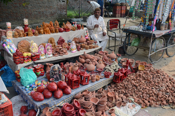 Venda de "dyias". Dyia são essas cumbuquinhas que são acessas na noite de Diwali! Na verdade são lâmpadas! rs! Eu vou mostrar depois, elas acesas!