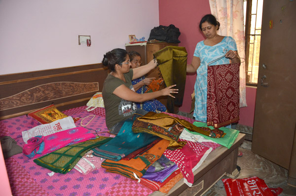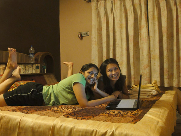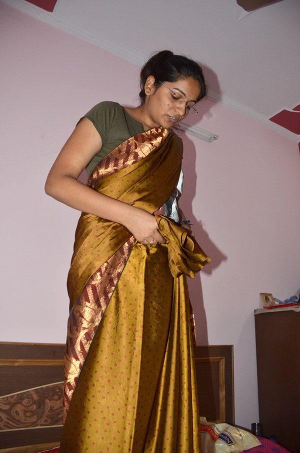 Smriti me ensinando... TENTANDO me ensinar! É muito complicado vestir um saree... é como uma dobradura de alta complexidade! ahahaha