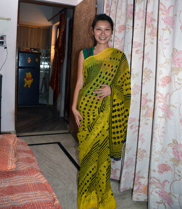 Eu de sári! Mas claro, foi a Smriti que fez a "dobradura"! Afinal de contas, são cerca de 6 metros de tecido!