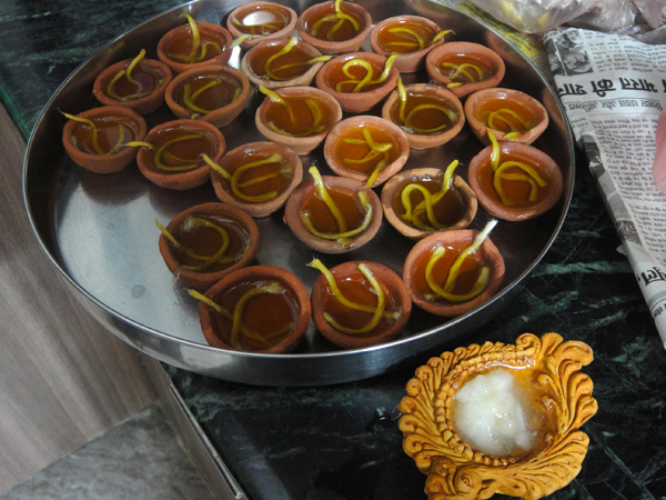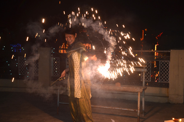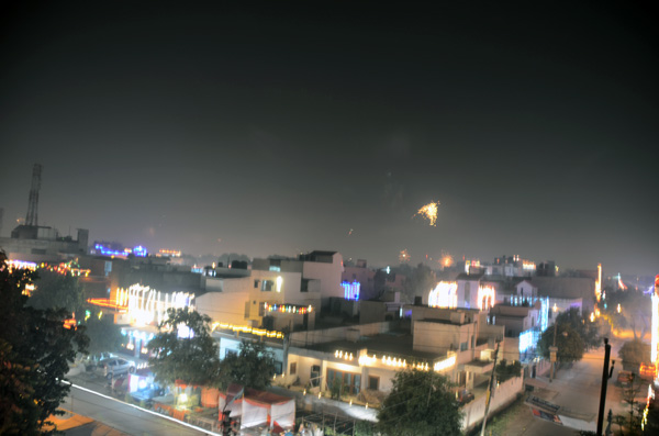 Pelo que percebi, Diwali é a comemoração mais aguardada pelos hindus! Desde o dia que cheguei, já ouvia dizer sobre essa festa! Diwali, ou Festa das Luzes, representa a destruição do mal! Nessa data, as pessoas usam roupas novas, trocam doces e soltam fogos de artifício… muitos fogos! Sério!! Não é como o ano novo no Brasil, que dura alguns minutos e depois.. silêncio no céu! Na India, tem fogos por horas e horas…, todos espalhados pelos vários pontos da cidade! É a Festa das Luzes, porque são acendidas muitas lâmpadas, chamadas Diyas, simbolizando a vitória do bem sobre o mal! Essa festa é como se fosse uma mistura do Natal e Ano Novo para o Brasil, já que as casas são enfeitadas com várias luzes, como as pisca-pisca usadas no Natal brasileiro! Fica tudo muito lindo! Essa festa geralmente cai em outubro ou novembro!