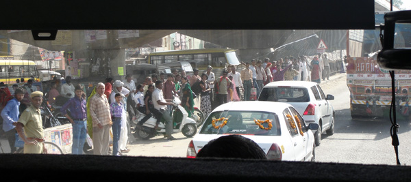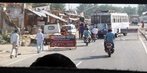 A viagem foi bem longa! A distância entre Delhi e Jaipur é de aproximadamente 260km.. mas como a estrada não é muito boa, sem contar o trânsito… A viagem foi beem longa! Cerca de 6 horas de viagem. E eu peguei um ônibus mais barato, sem ar condicionado… viajando durante o dia, com aquele calor.. derreti!! Como era minha 1ª viagem de ônibus sozinha, a Smriti achou melhor eu viajar de dia!