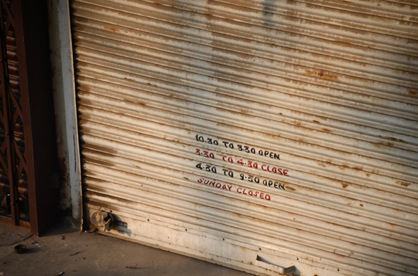 Essa foto eu tirei de uma loja em Ghaziabad, da sacada da casa da Smriti, que ilustra muito bem o horário de funcionamento das lojas na India!