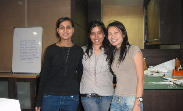 Este foi o último dia da Viji na agência… ela ía se mudar pra New Delhi..! Fiquei super triste, porque fui pega de surpresa.. fiquei sabendo só no dia.. e isso aconteceu muitas vezes.. pessoas saíam da Crayons, e eu só ficava sabendo no dia, ou depois.. quando a pessoa não aparecia! • Rakhi, Viji e eu! (A Viji era a que mais conversava comigo – em ingles! – ahaha). Ela falava muito bem!