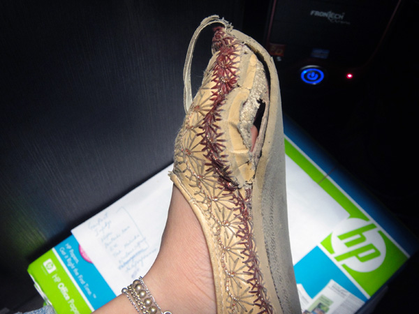 Tinha comprado um sapato no primeiro dia, em Delhi… durou bastante, né? AHauAHAUa