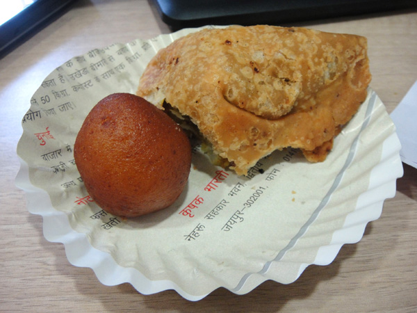 Rakhi comprou gulab jamun e samosa pra todos no escritório! É de costume comprar algum prato pra todos, quando você recebe seu primeiro salário! Será que passei como mal-educada por não ter comprado? Eu não sabia.. AHaUaHau!