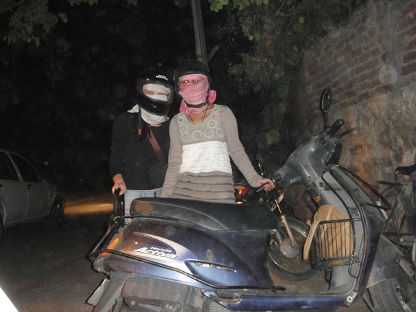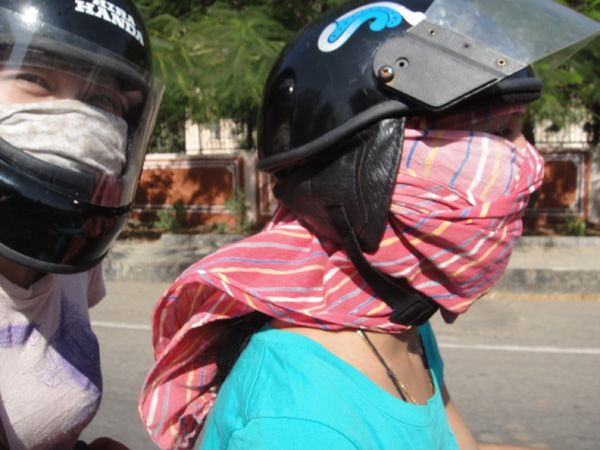Todo dia, pra ir e pra voltar do trabalho, eu pegava um rickshaw… tinha que parar um… explicar onde ficava o escritório… e negociar o preço! Até que um dia, a Viji me perguntou.. porque eu não comprava um capacete e pegava carona com alguém (já que eu morava meio perto…)! Foi aí que eu descobri quanto custava um capacete.. Claro que tinha de vários preços..! Mas eu paguei 150 rúpias! Cerca de R$ 5,50! ahaha!