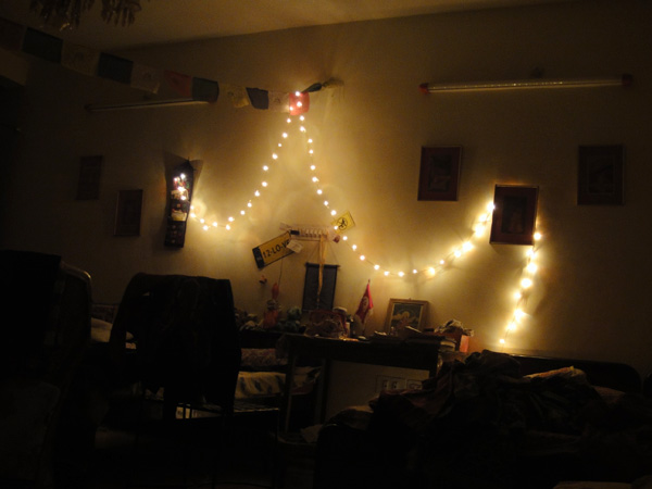 A Love tinha umas luzes em cima da cama dela! Era tão confortável dormir assim.. sei lá.. lembrava clima de natal..!