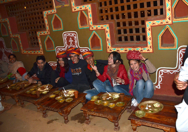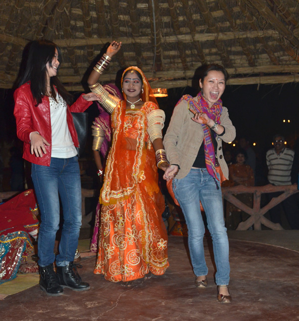 No escritório conheci a nova estagiária, Shivangi. Confesso que quando conheci ela, achei que fosse alguma intercambista, porque ela não parecia ser indiana! Mas era! Mas ela estudava em Cingapura, então estava na India apenas nas férias, pra visitar a família, e aproveitar e fazer um estágio! Um dia ela me chamou pra ir ao Chokhi Dhani… já estava quase indo embora de Jaipur, e nunca tinha ouvido falar desse lugar! Chokhi Dhani é um lugar que recria um típico vilarejo do Rajastão, e podemos conhecer um pouco da cultura através da dança, música e comida!