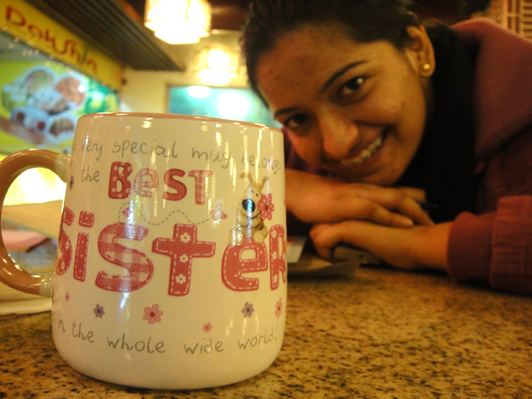 Olha que fofo! Ganhei uma caneca de Best Sister da Smriti! Tá aqui junto com minha coleção de canecas agora! =)