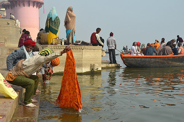 Roupas sendo lavadas nas águas sagradas do Ganges